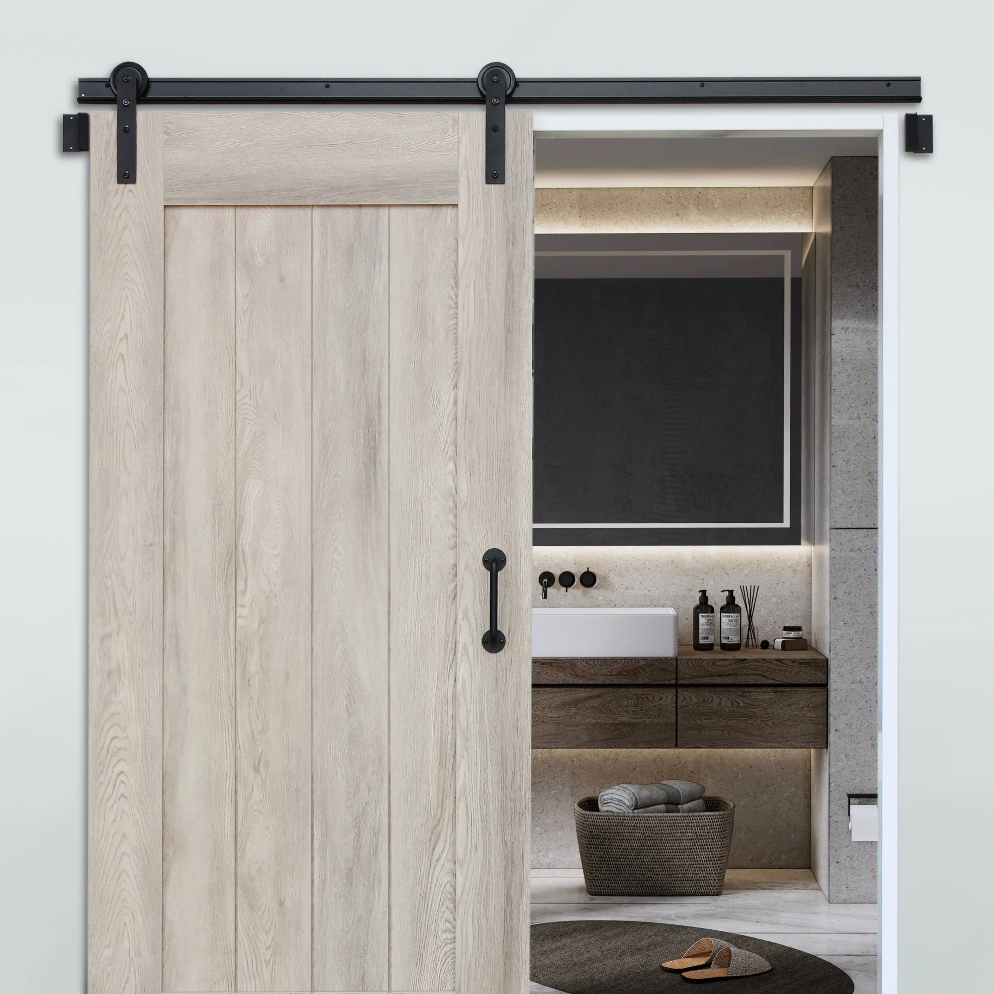 Choose from a variety of track lengths sold separately to customise your setup, with options available in both black and white. Barn Style Handles are also available in both black and white.