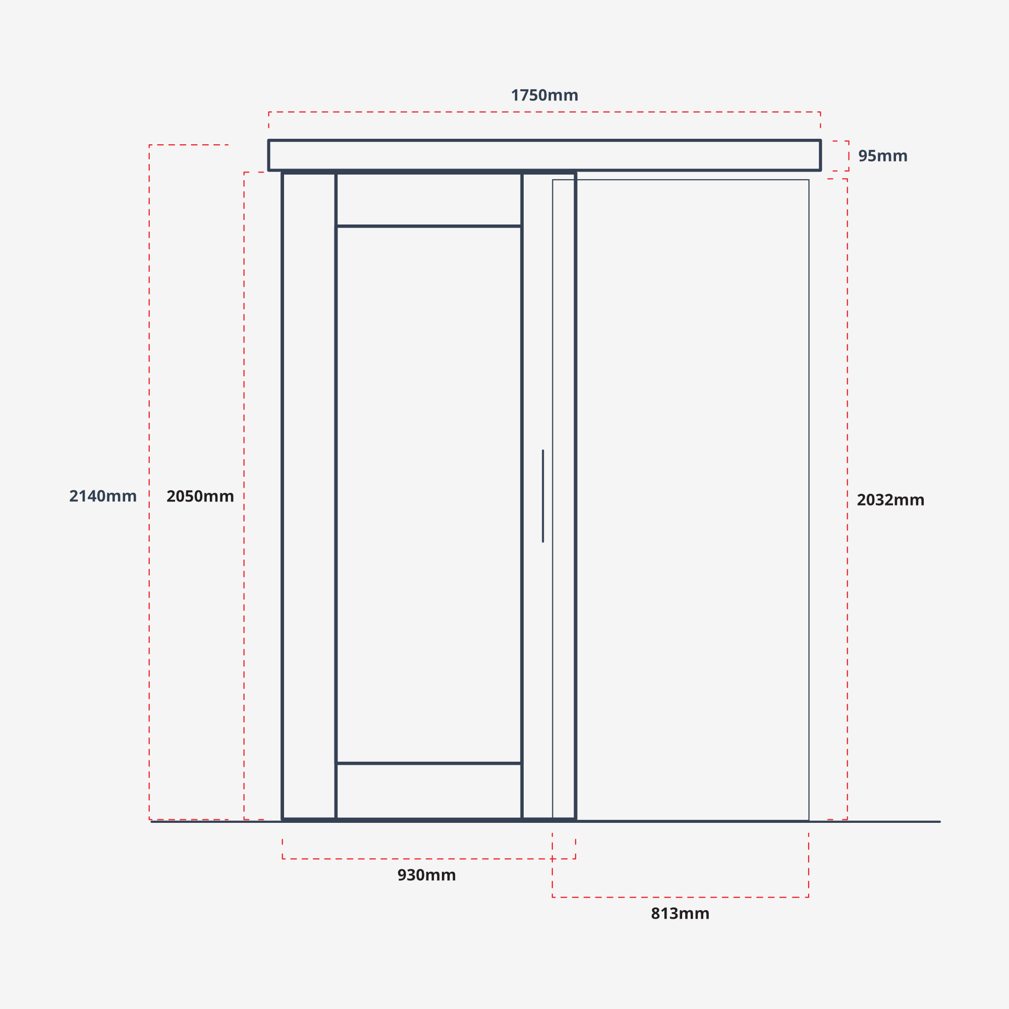 Our Delta Interior Sliding Door comes equipped with a robust track mechanism designed for smooth and effortless operation. The door’s modern minimalist aesthetic features hidden supports and fixings with the track mounted above the door to eliminate any floor tracks. Designed for optimal compatibility, the door fits openings of 813mm x 2032mm, with the door itself measuring 930mm x 2050mm. Installation is also made simpler, as these doors can be mounted directly over existing steel door frames.